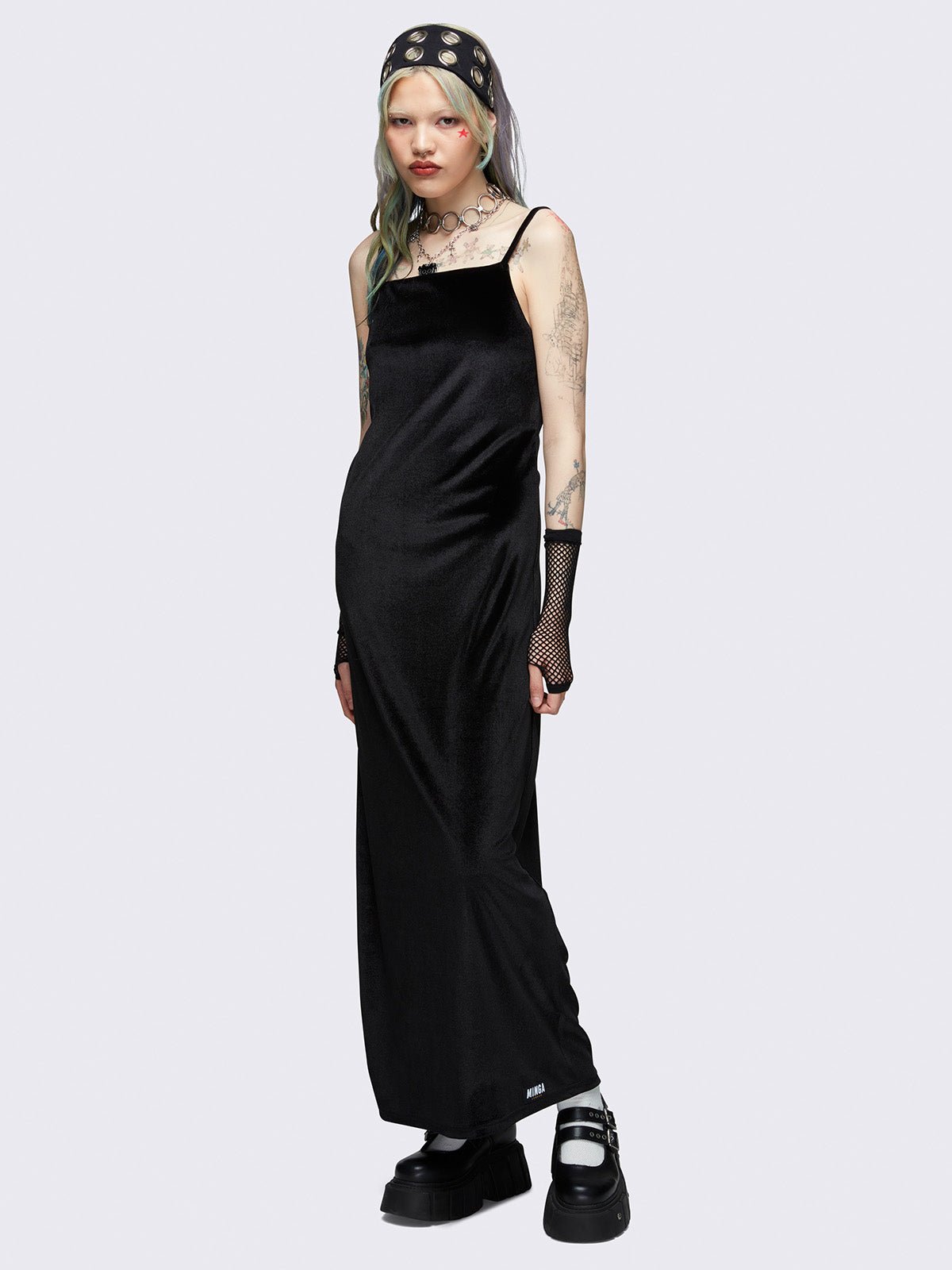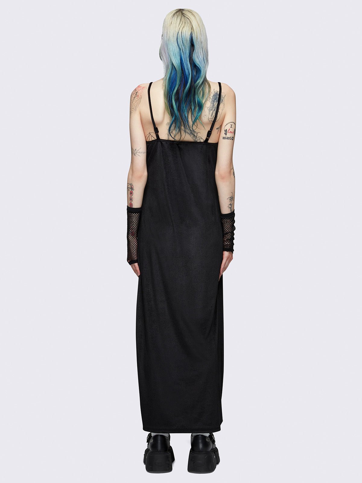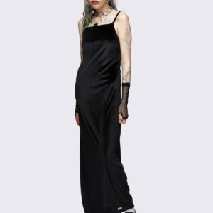 - Black cami maxi velvet dress