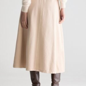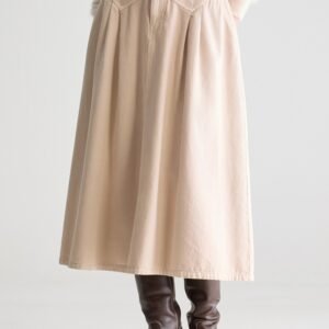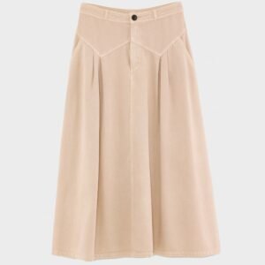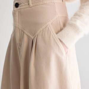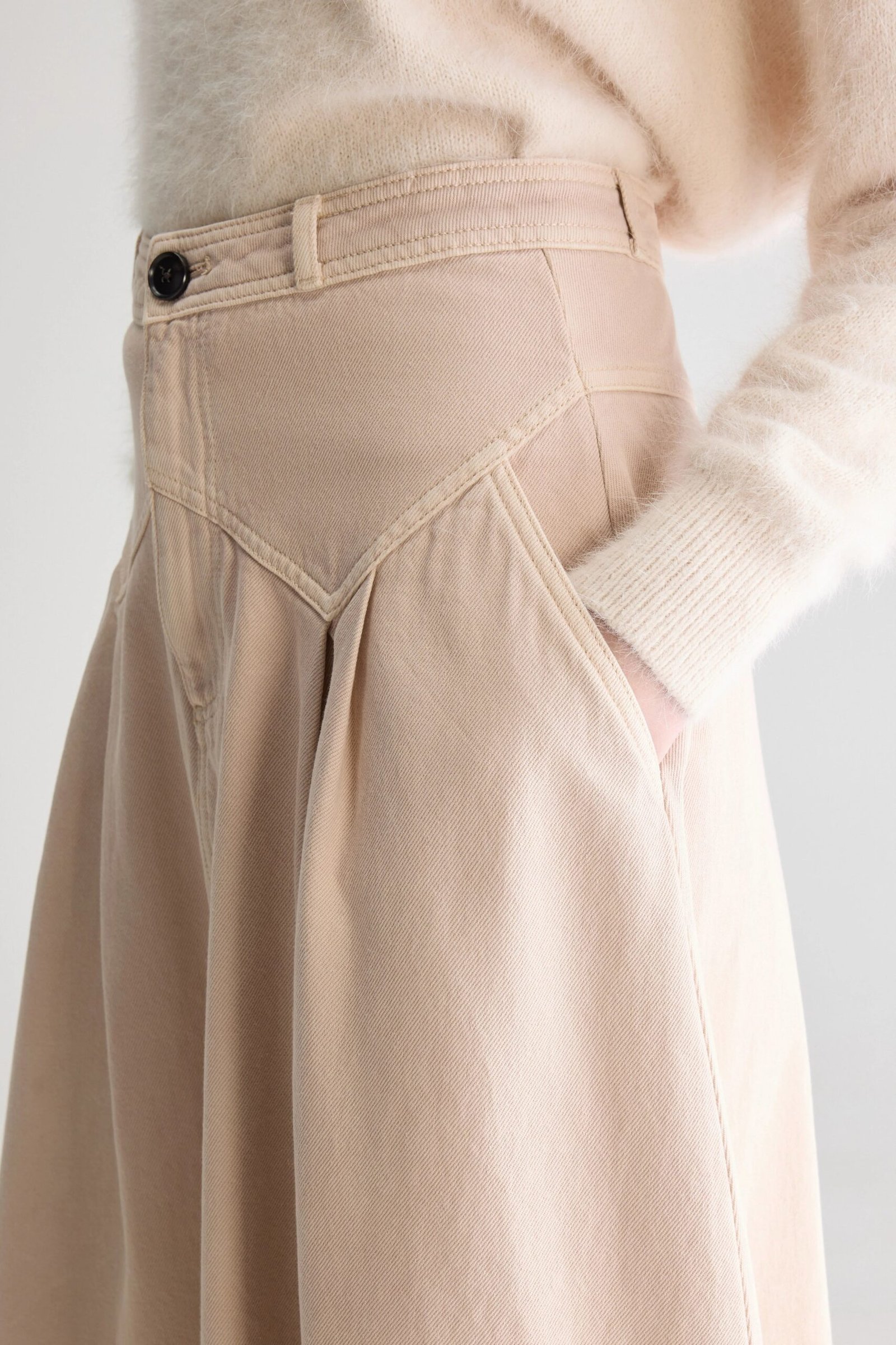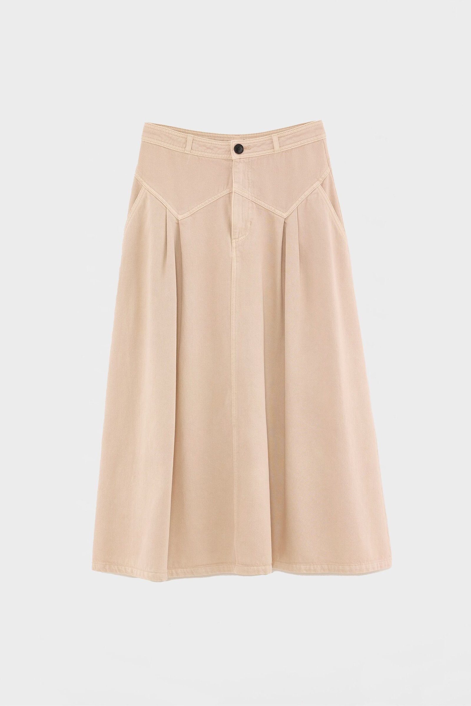 Flared mid skirt with Western-inspired details on the waist and front pleats made from pastel lilac cotton twill.
